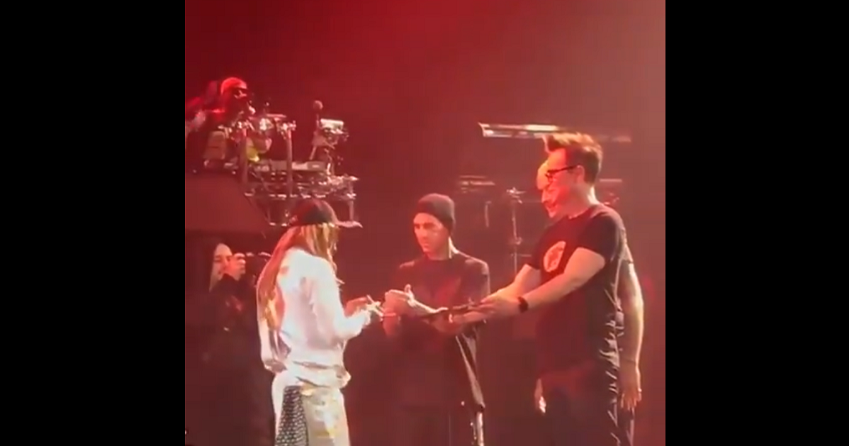 blink-182 gifting lil wayne a blunt on stage for weezy’s birthday >>> pic.twitter.com/AcqvGf5Taz